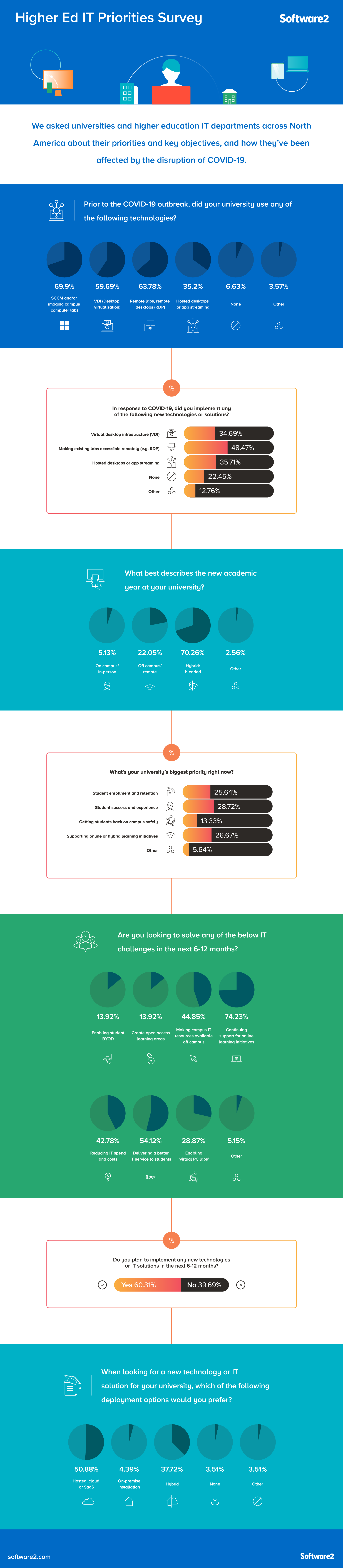 In a survey posed to higher education IT leaders and universities across North America, we asked about how COVID-19 has affected software delivery priorities, outcomes, and criteria for implementing new technologies.